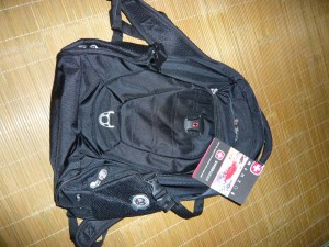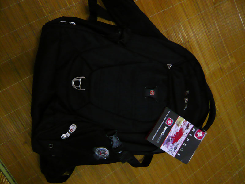 昨天下午在淘宝上买了个双肩笔记本包,听说是瑞士军刀的。