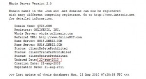 为了进一步查明情况,我去internic查了下qtzx.com的whois信息,结果如下: