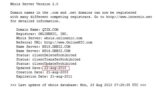 whois信息显示,qtzx.com的信息在昨天8月22日被改动了!