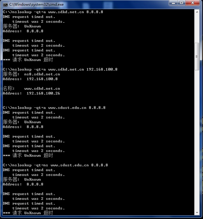随后,使用nslookup命令做了简单的查询,结果,真的让人大跌眼镜——NS服务器再次宕机!