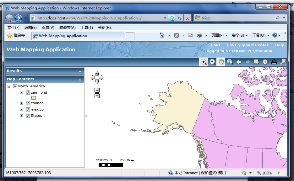 先发布了一个GIS Resource,再用VS 2005,套默认的模板,建了个Web Application测试,结果,页面是出来了,地图没了,再次昏迷,刷新了下,还是没有,不过这时注意到了,有脚本错误,莫非是IE 8的兼容性问题?选择兼容模式,上帝保佑,上帝保佑,摸摸念了好几遍,结果,上帝真的保佑了,出来了!