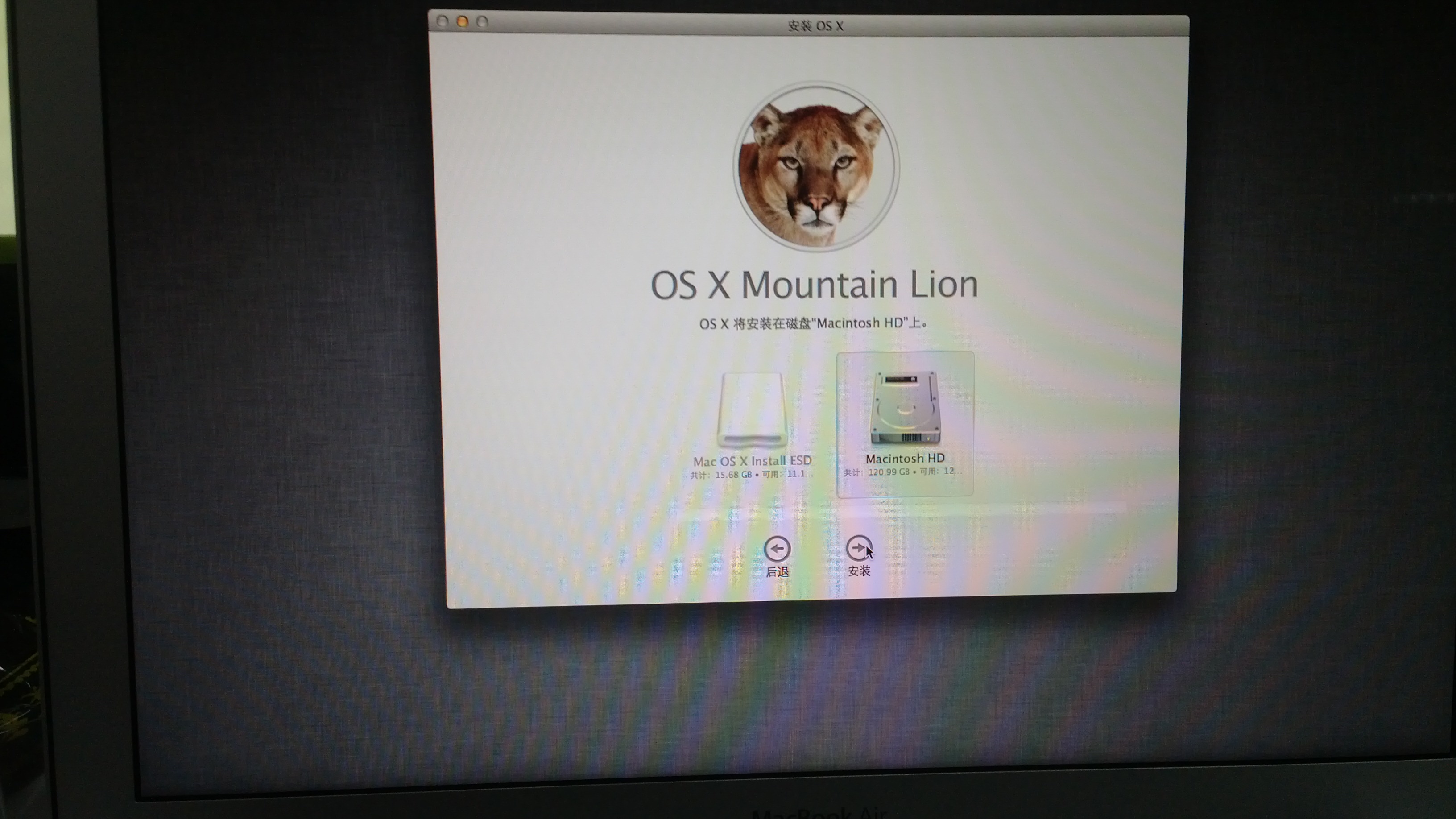没有光盘(就算有了也没用,air没有光驱),没有U盘(苹果现在不送恢复U盘了,鄙视下),没有Mac OS X的安装包……什么都木有……有的只是慢如蜗牛的网速(顺便BS下这么限速的学校,2M的带宽,让我去下4G多的安装包,这不等于让我活活忍受煎熬么!)