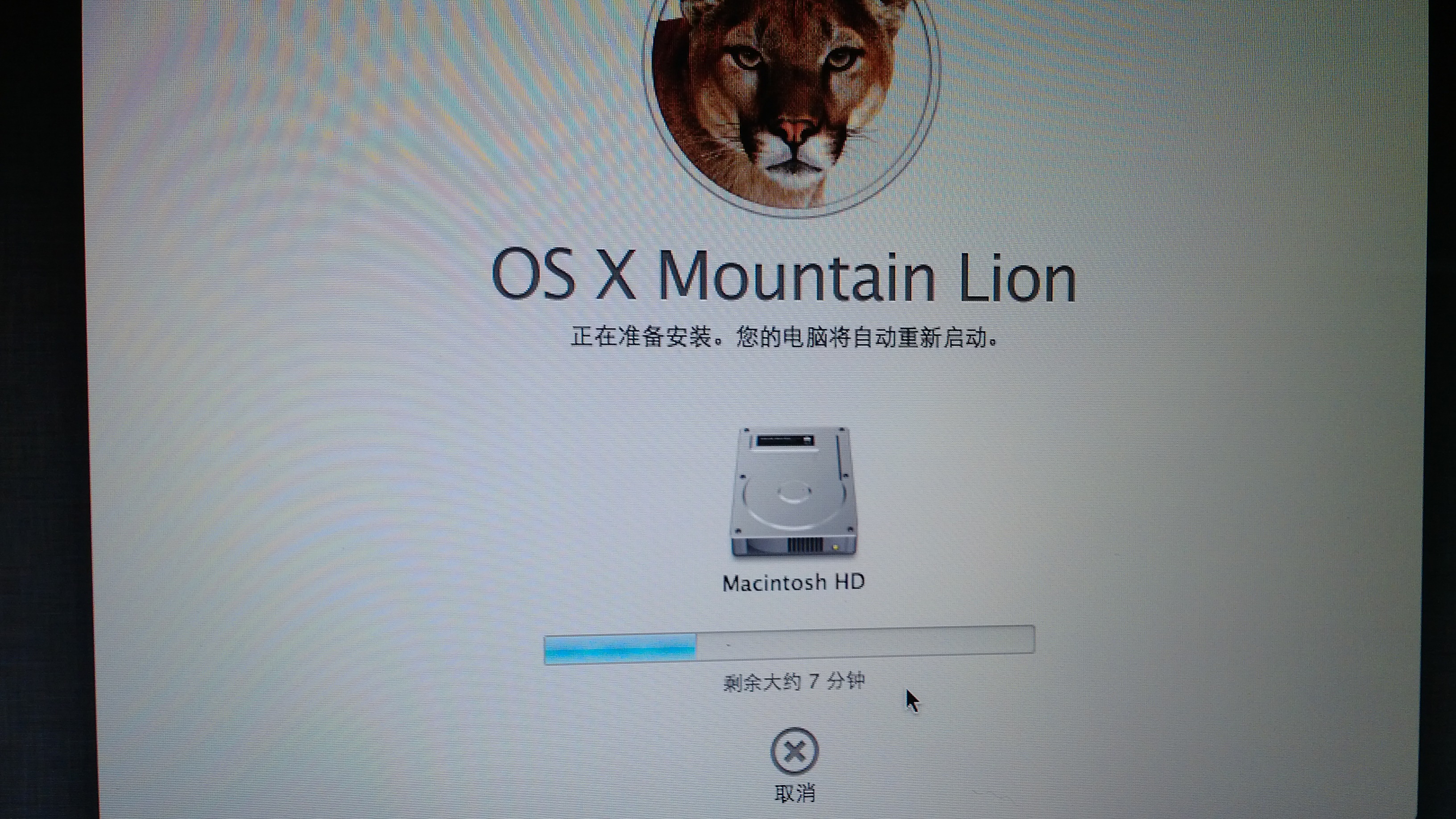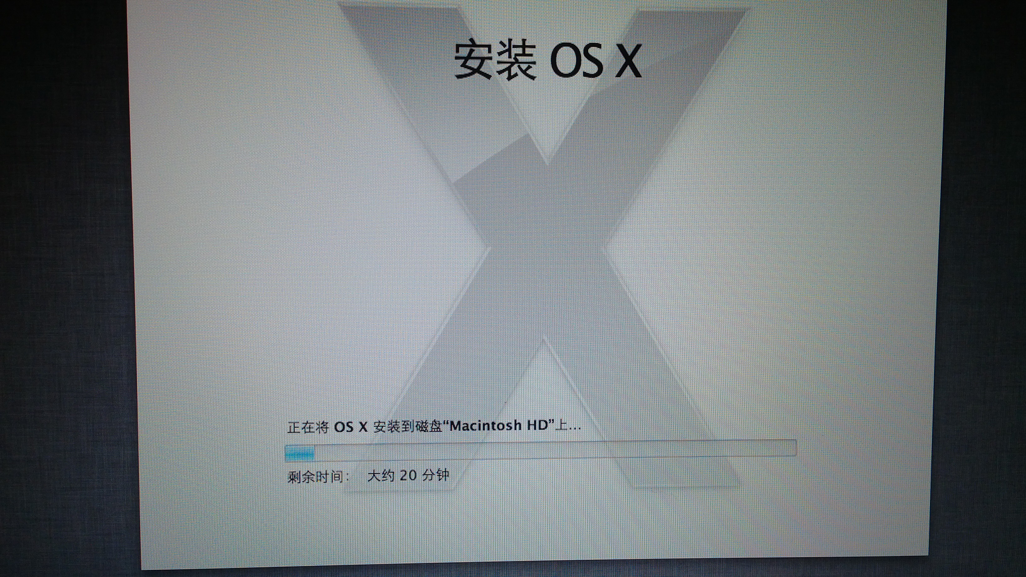 下完安装包,跑回去,把安装包移动到移动硬盘里,在mac上插上移动硬盘、U盘,开始制作恢复U盘了,虽然过程有点儿长,但没出什么问题,还是比较欣慰的。