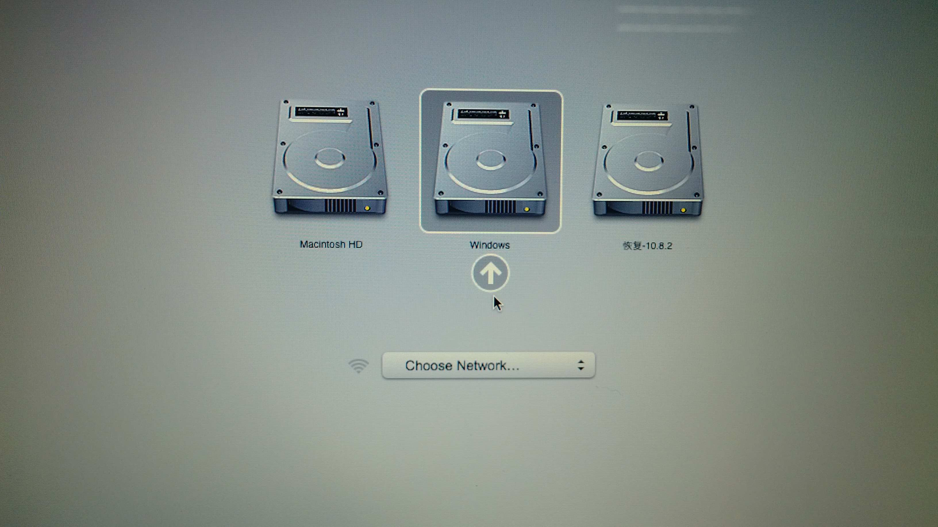 重启下,按option,哦了,看到mac、windows的双启动项了……