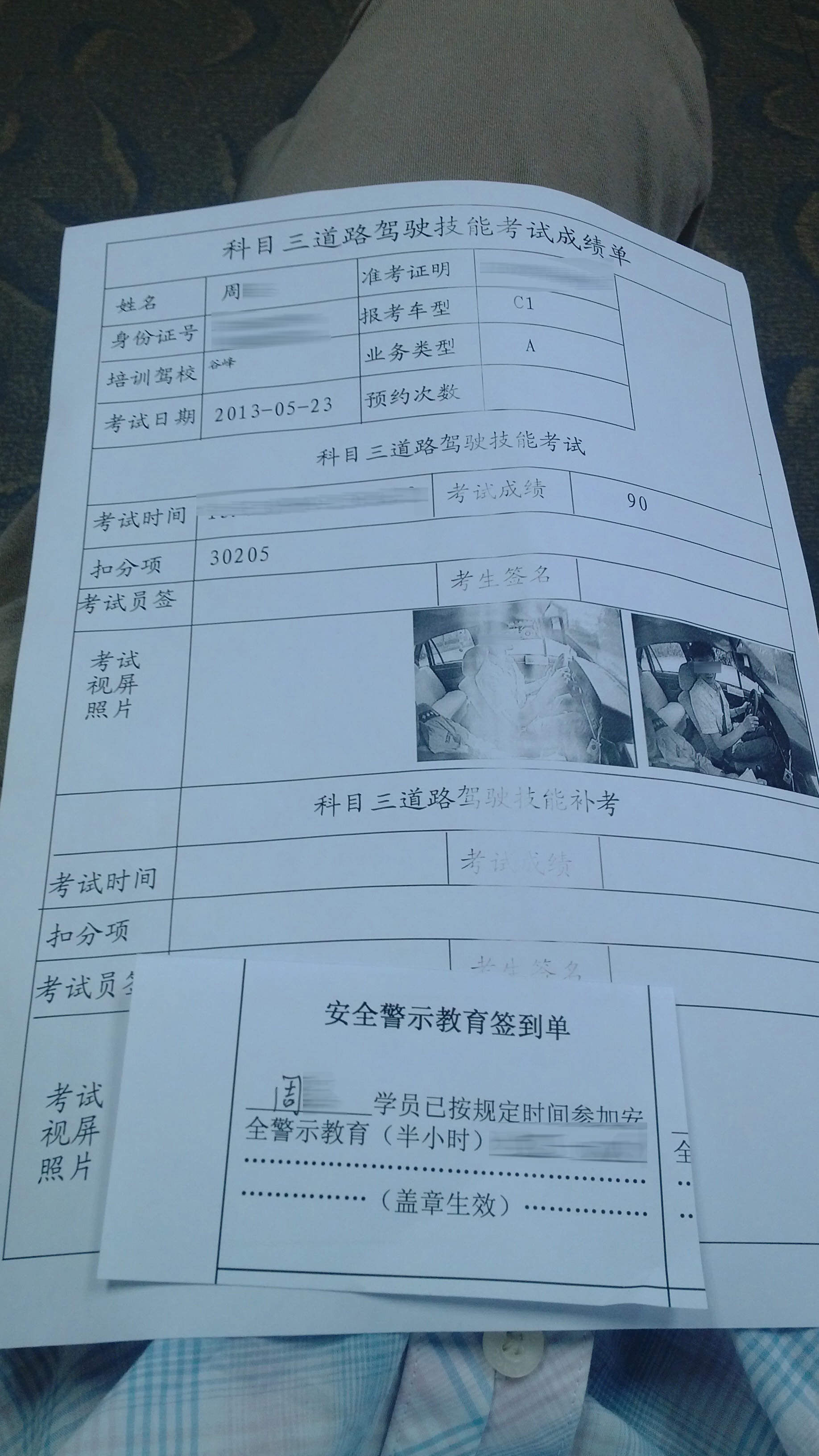 到了开学,第二天,就去保卫处接出了《常住人口登记表》,去驾校,补交上。这样就算完成了整个报名手续。回学校等科目一开课通知。